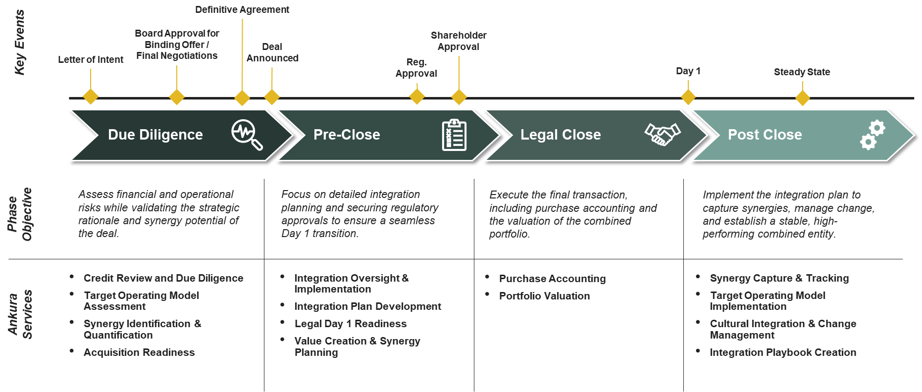 From our hands-on experience advising banks through major acquisitions, we have identified four critical challenge areas that consistently emerge. For any leadership team navigating the complexities of an M&A event, addressing these imperatives is fundamental to protecting their investment and achieving the intended strategic outcomes.